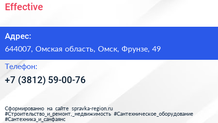 Effective по адресу 644007, Омская область, Омск, Фрунзе, 49 в дальнейшем Организация, размещена в следующих категориях:
