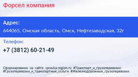 Форсел, компания по адресу 644065, Омская область, Омск, Нефтезаводская, 32г в дальнейшем Организация, размещена в следующих категориях: