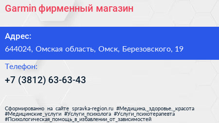 Garmin, фирменный магазин по адресу 644024, Омская область, Омск, Березовского, 19 в дальнейшем Организация, размещена в следующих категориях:
