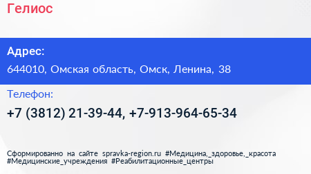Гелиос по адресу 644010, Омская область, Омск, Ленина, 38 в дальнейшем Организация, размещена в следующих категориях: