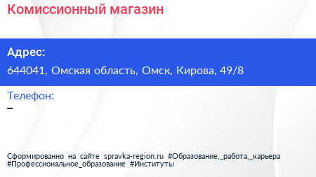 Комиссионный магазин по адресу 644041, Омская область, Омск, Кирова, 49/8 в дальнейшем Организация, размещена в следующих категориях:
