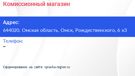 Комиссионный магазин по адресу 644020, Омская область, Омск, Рождественского, 6 к3 в дальнейшем Организация, размещена в следующих категориях: