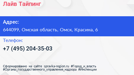 Лайв Тайпинг по адресу 644099, Омская область, Омск, Красина, 6 в дальнейшем Организация, размещена в следующих категориях: