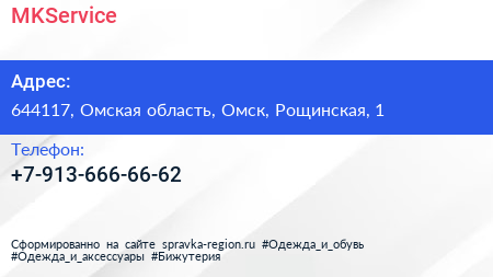 MKService по адресу 644117, Омская область, Омск, Рощинская, 1 в дальнейшем Организация, размещена в следующих категориях: