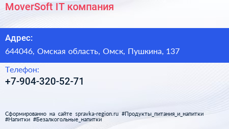 MoverSoft, IT-компания по адресу 644046, Омская область, Омск, Пушкина, 137 в дальнейшем Организация, размещена в следующих категориях:
