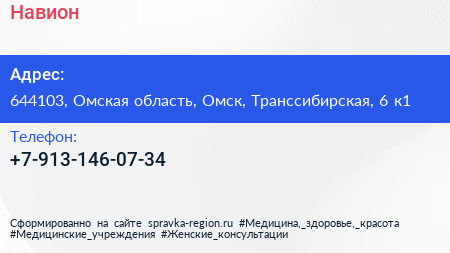 Навион по адресу 644103, Омская область, Омск, Транссибирская, 6 к1 в дальнейшем Организация, размещена в следующих категориях: