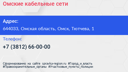 Омские кабельные сети по адресу 644033, Омская область, Омск, Тютчева, 1 в дальнейшем Организация, размещена в следующих категориях: