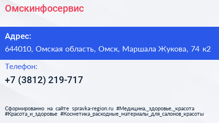 Омскинфосервис по адресу 644010, Омская область, Омск, Маршала Жукова, 74 к2 в дальнейшем Организация, размещена в следующих категориях:
