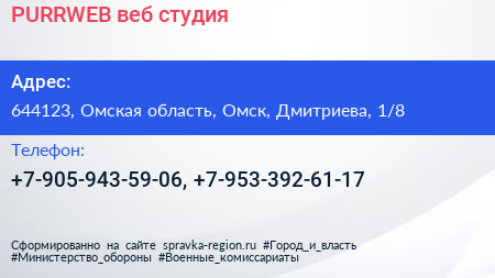 PURRWEB, веб-студия по адресу 644123, Омская область, Омск, Дмитриева, 1/8 в дальнейшем Организация, размещена в следующих категориях: