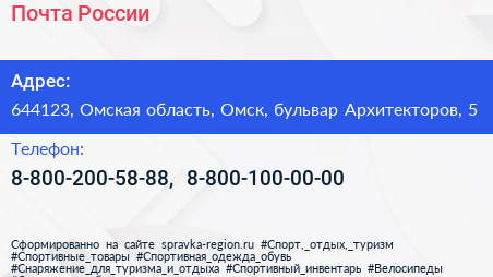 Почта России по адресу 644123, Омская область, Омск, бульвар Архитекторов, 5 в дальнейшем Организация, размещена в следующих категориях: