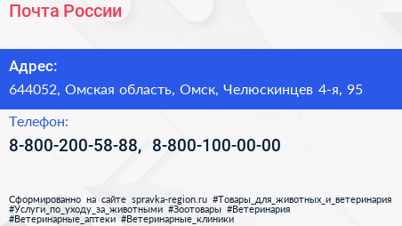 Почта России по адресу 644052, Омская область, Омск, Челюскинцев 4-я, 95 в дальнейшем Организация, размещена в следующих категориях: