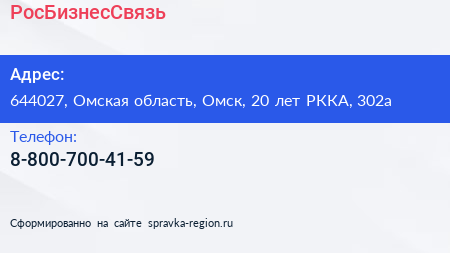 РосБизнесСвязь по адресу 644027, Омская область, Омск, 20 лет РККА, 302а в дальнейшем Организация, размещена в следующих категориях: