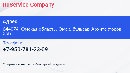RuService Company по адресу 644074, Омская область, Омск, бульвар Архитекторов, 35Б в дальнейшем Организация, размещена в следующих категориях: