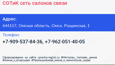СОТиК, сеть салонов связи по адресу 644117, Омская область, Омск, Рощинская, 1 в дальнейшем Организация, размещена в следующих категориях: