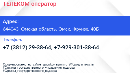 ТЕЛЕКОМ, оператор по адресу 644043, Омская область, Омск, Фрунзе, 40Б в дальнейшем Организация, размещена в следующих категориях: