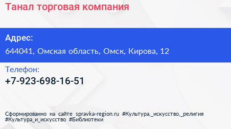 Танал, торговая компания по адресу 644041, Омская область, Омск, Кирова, 12 в дальнейшем Организация, размещена в следующих категориях:
