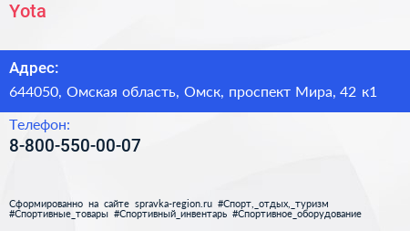 Yota по адресу 644050, Омская область, Омск, проспект Мира, 42 к1 в дальнейшем Организация, размещена в следующих категориях:
