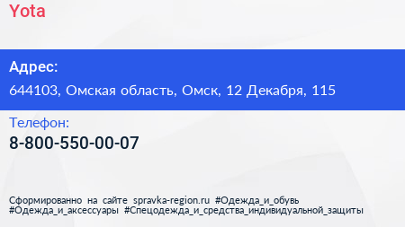 Yota по адресу 644103, Омская область, Омск, 12 Декабря, 115 в дальнейшем Организация, размещена в следующих категориях: