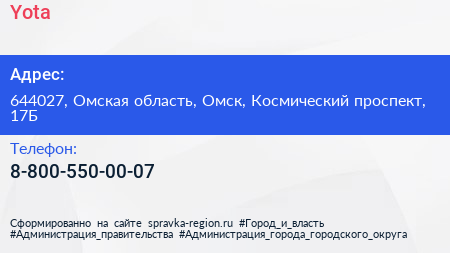 Yota по адресу 644027, Омская область, Омск, Космический проспект, 17Б в дальнейшем Организация, размещена в следующих категориях: