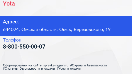 Yota по адресу 644024, Омская область, Омск, Березовского, 19 в дальнейшем Организация, размещена в следующих категориях: