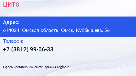 ЦИТО по адресу 644024, Омская область, Омск, Куйбышева, 56 в дальнейшем Организация, размещена в следующих категориях: