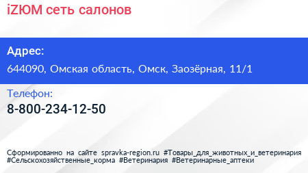 iZЮМ, сеть салонов по адресу 644090, Омская область, Омск, Заозёрная, 11/1 в дальнейшем Организация, размещена в следующих категориях: