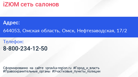 iZЮМ, сеть салонов по адресу 644053, Омская область, Омск, Нефтезаводская, 17/2 в дальнейшем Организация, размещена в следующих категориях: