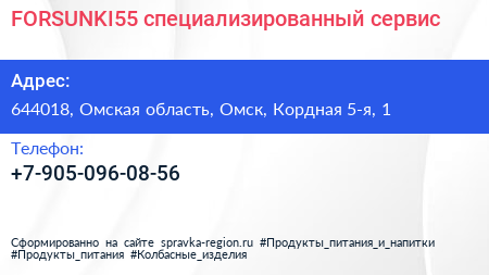 FORSUNKI55, специализированный сервис по адресу 644018, Омская область, Омск, Кордная 5-я, 1 в дальнейшем Организация, размещена в следующих категориях: