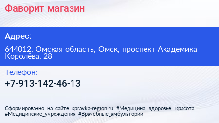 Фаворит, магазин по адресу 644012, Омская область, Омск, проспект Академика Королёва, 28 в дальнейшем Организация, размещена в следующих категориях: