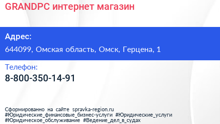 GRANDPC, интернет-магазин по адресу 644099, Омская область, Омск, Герцена, 1 в дальнейшем Организация, размещена в следующих категориях: