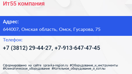 Ит55, компания по адресу 644007, Омская область, Омск, Гусарова, 75 в дальнейшем Организация, размещена в следующих категориях: