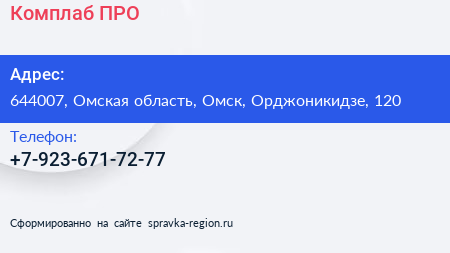 Комплаб ПРО по адресу 644007, Омская область, Омск, Орджоникидзе, 120 в дальнейшем Организация, размещена в следующих категориях: