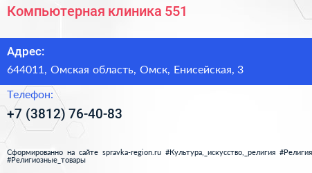 Компьютерная клиника №551 по адресу 644011, Омская область, Омск, Енисейская, 3 в дальнейшем Организация, размещена в следующих категориях: