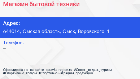 Магазин бытовой техники по адресу 644014, Омская область, Омск, Воровского, 1 в дальнейшем Организация, размещена в следующих категориях: