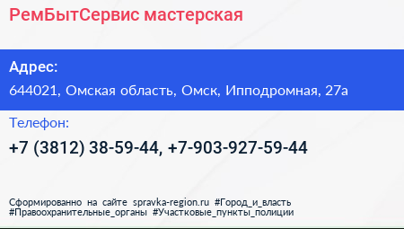 РемБытСервис, мастерская по адресу 644021, Омская область, Омск, Ипподромная, 27а в дальнейшем Организация, размещена в следующих категориях: