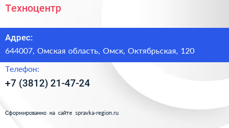 Техноцентр по адресу 644007, Омская область, Омск, Октябрьская, 120 в дальнейшем Организация, размещена в следующих категориях: