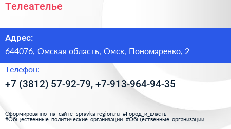 Телеателье по адресу 644076, Омская область, Омск, Пономаренко, 2 в дальнейшем Организация, размещена в следующих категориях: