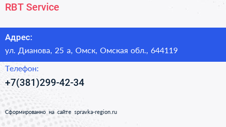 RBT Service по адресу ул. Дианова, 25 а, Омск, Омская обл., 644119 в дальнейшем Организация, размещена в следующих категориях: