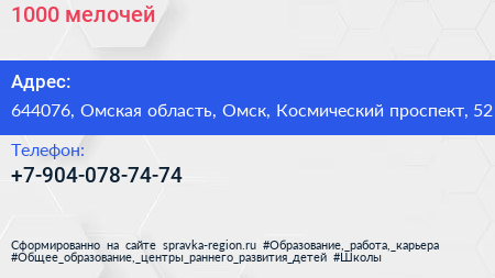 1000 мелочей по адресу 644076, Омская область, Омск, Космический проспект, 52 в дальнейшем Организация, размещена в следующих категориях:
