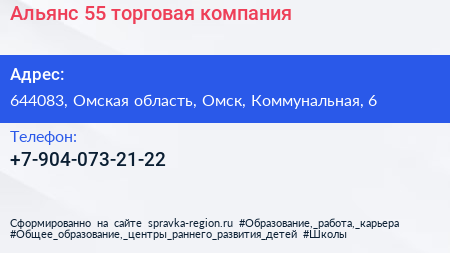 Альянс 55, торговая компания по адресу 644083, Омская область, Омск, Коммунальная, 6 в дальнейшем Организация, размещена в следующих категориях: