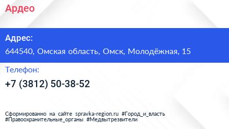 Ардео по адресу 644540, Омская область, Омск, Молодёжная, 15 в дальнейшем Организация, размещена в следующих категориях: