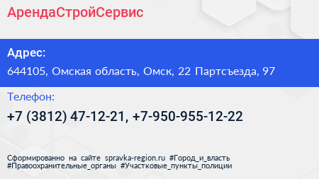 АрендаСтройСервис по адресу 644105, Омская область, Омск, 22 Партсъезда, 97 в дальнейшем Организация, размещена в следующих категориях: