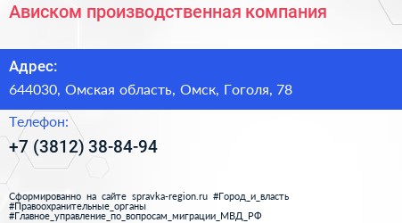 Ависком, производственная компания по адресу 644030, Омская область, Омск, Гоголя, 78 в дальнейшем Организация, размещена в следующих категориях: