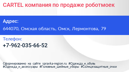 CARTEL, компания по продаже роботмоек по адресу 644070, Омская область, Омск, Лермонтова, 79 в дальнейшем Организация, размещена в следующих категориях: