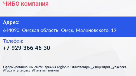 ЧИБО, компания по адресу 644090, Омская область, Омск, Малиновского, 19 в дальнейшем Организация, размещена в следующих категориях: