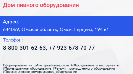 Дом пивного оборудования по адресу 644069, Омская область, Омск, Герцена, 194 к1 в дальнейшем Организация, размещена в следующих категориях: