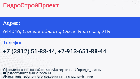 ГидроСтройПроект по адресу 644046, Омская область, Омск, Братская, 21Б в дальнейшем Организация, размещена в следующих категориях: