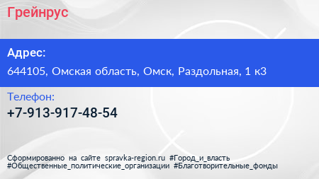 Грейнрус по адресу 644105, Омская область, Омск, Раздольная, 1 к3 в дальнейшем Организация, размещена в следующих категориях: