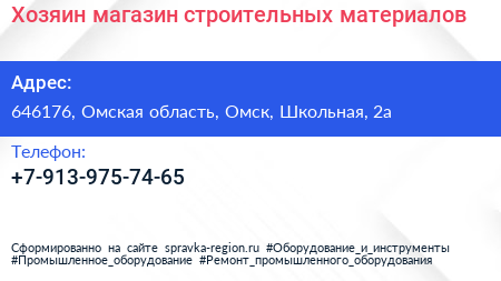 Хозяин, магазин строительных материалов по адресу 646176, Омская область, Омск, Школьная, 2а в дальнейшем Организация, размещена в следующих категориях: