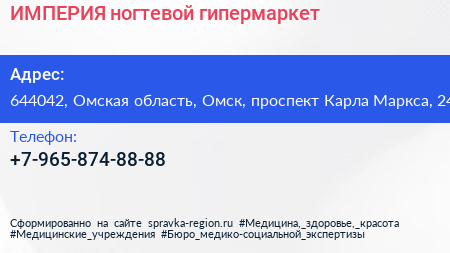 ИМПЕРИЯ, ногтевой гипермаркет по адресу 644042, Омская область, Омск, проспект Карла Маркса, 24 в дальнейшем Организация, размещена в следующих категориях: